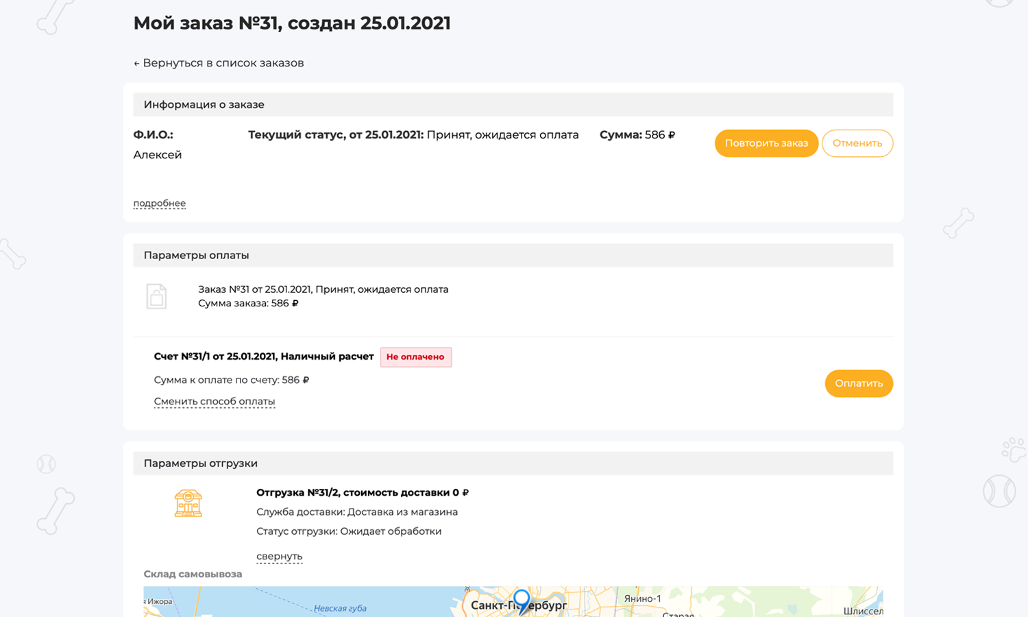 Личный кабинет даёт возможность следить за историей заказов, изменять способ оплаты,