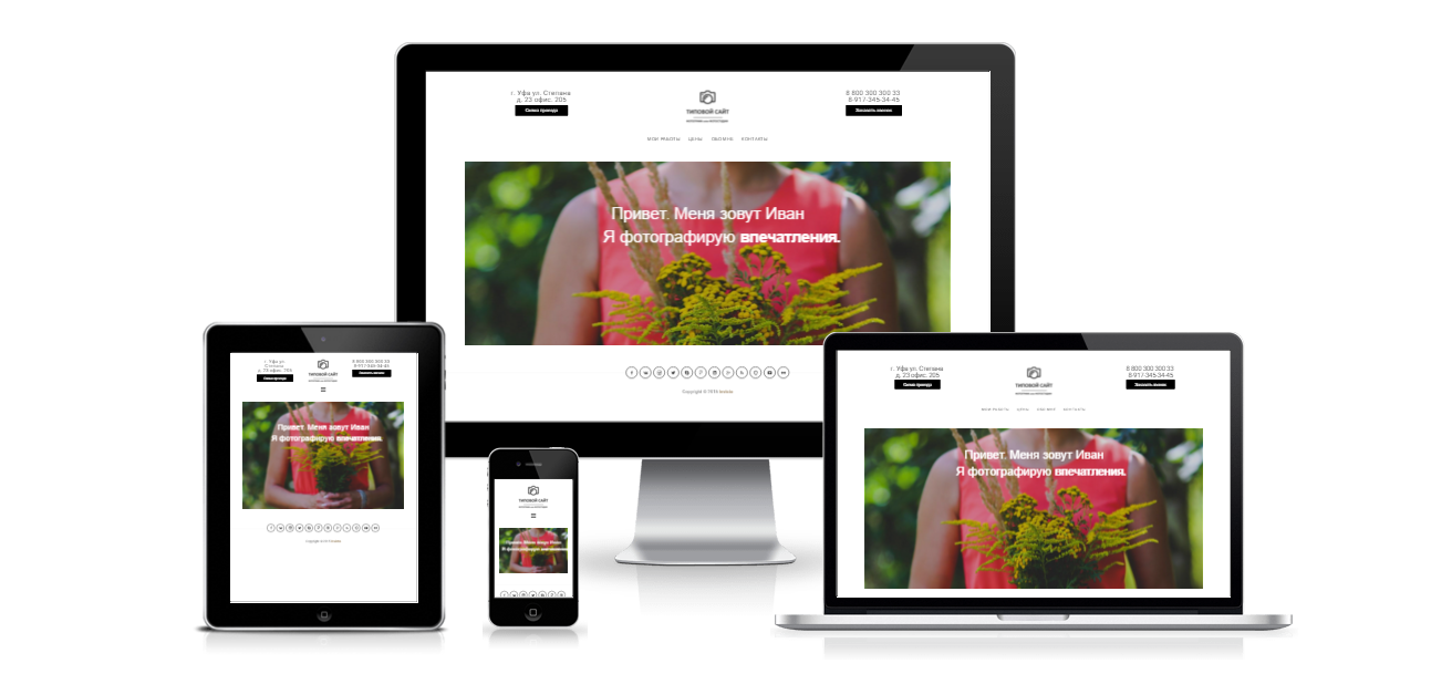 Адаптивный сайт портфолио фотографа или фотостудии отлично подойдет для создания собственного сайта фотографу или сайту услуг для фотостудий.