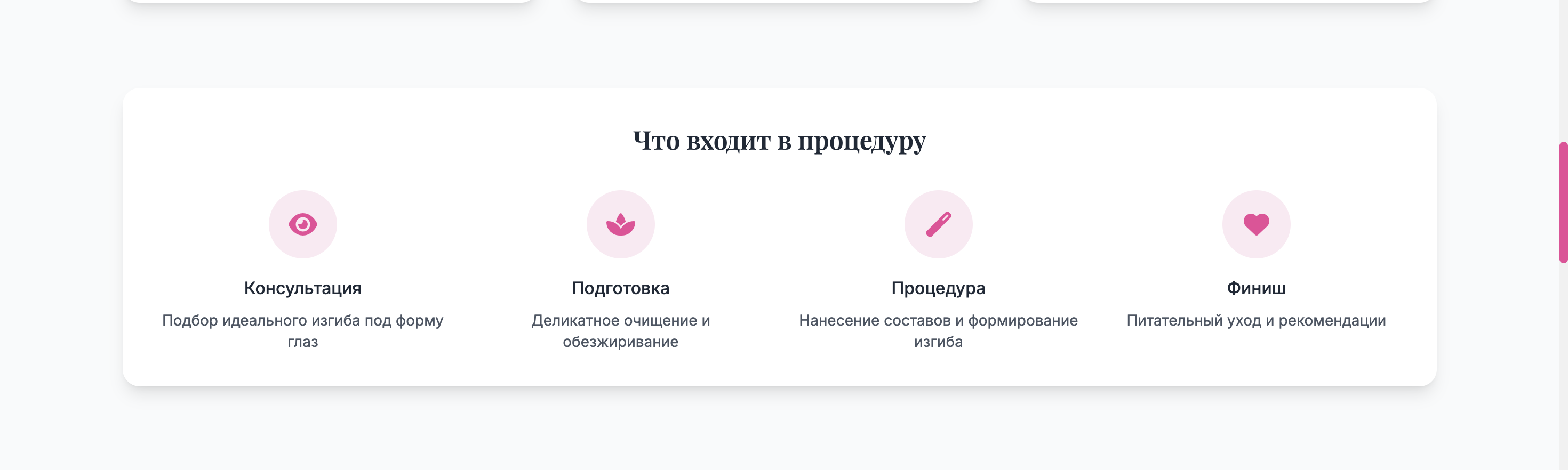 Решение представляет собой современный лендинг для мастера по ламинированию ресниц, выполненный как одностраничный сайт с адаптивным дизайном, интерактивными элементами и удобной системой взаимодействия с посетителями.