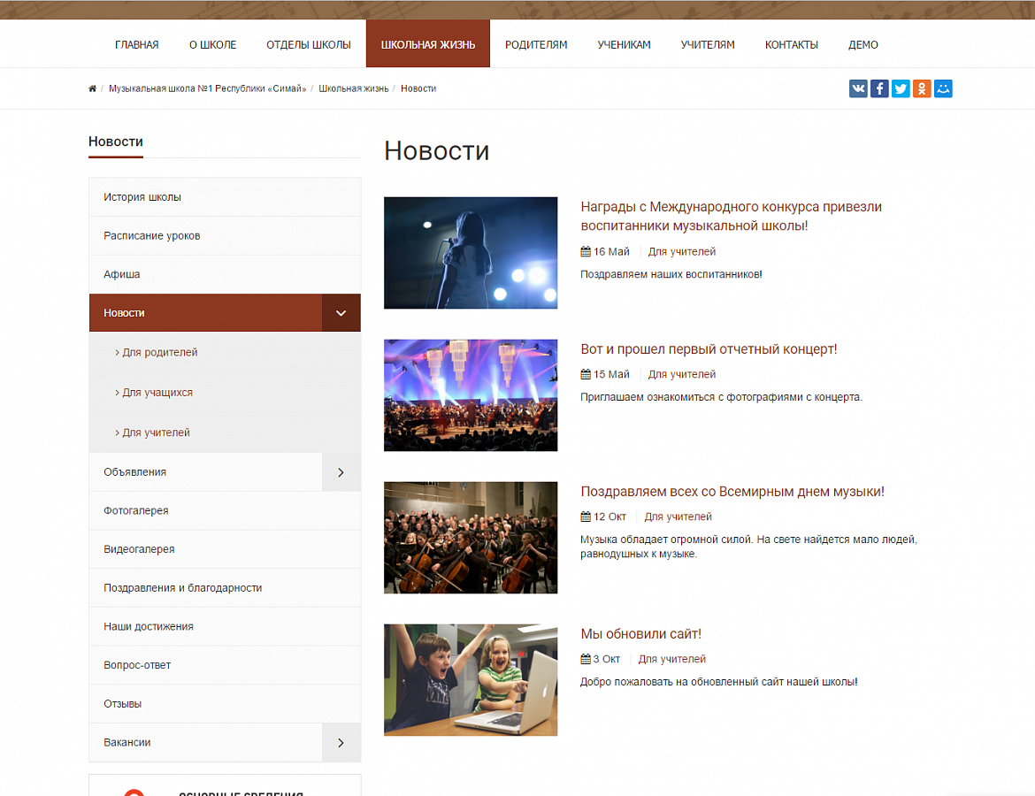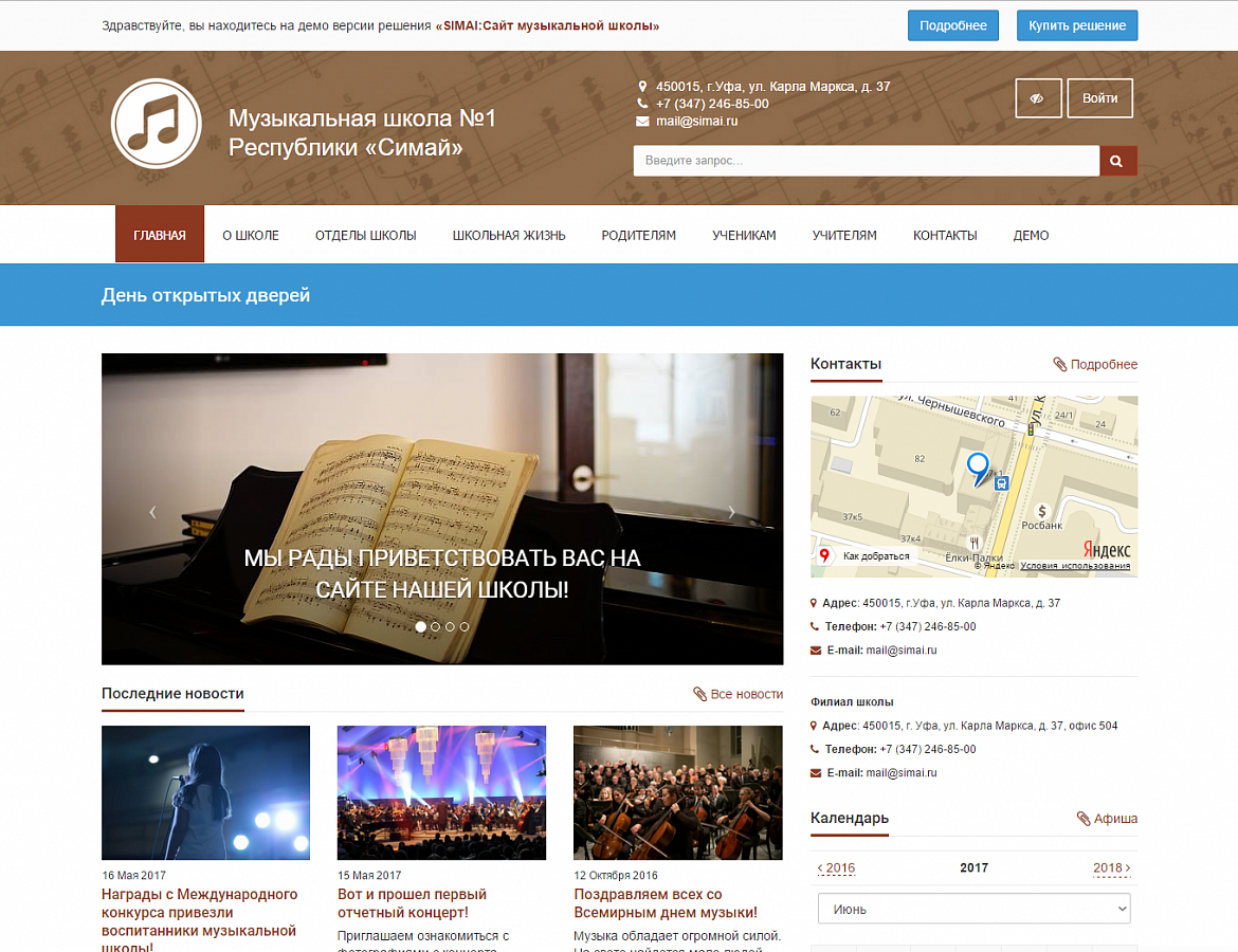 - Продуманная и удобная структура сайта, разработанная специально для музыкальных школ.