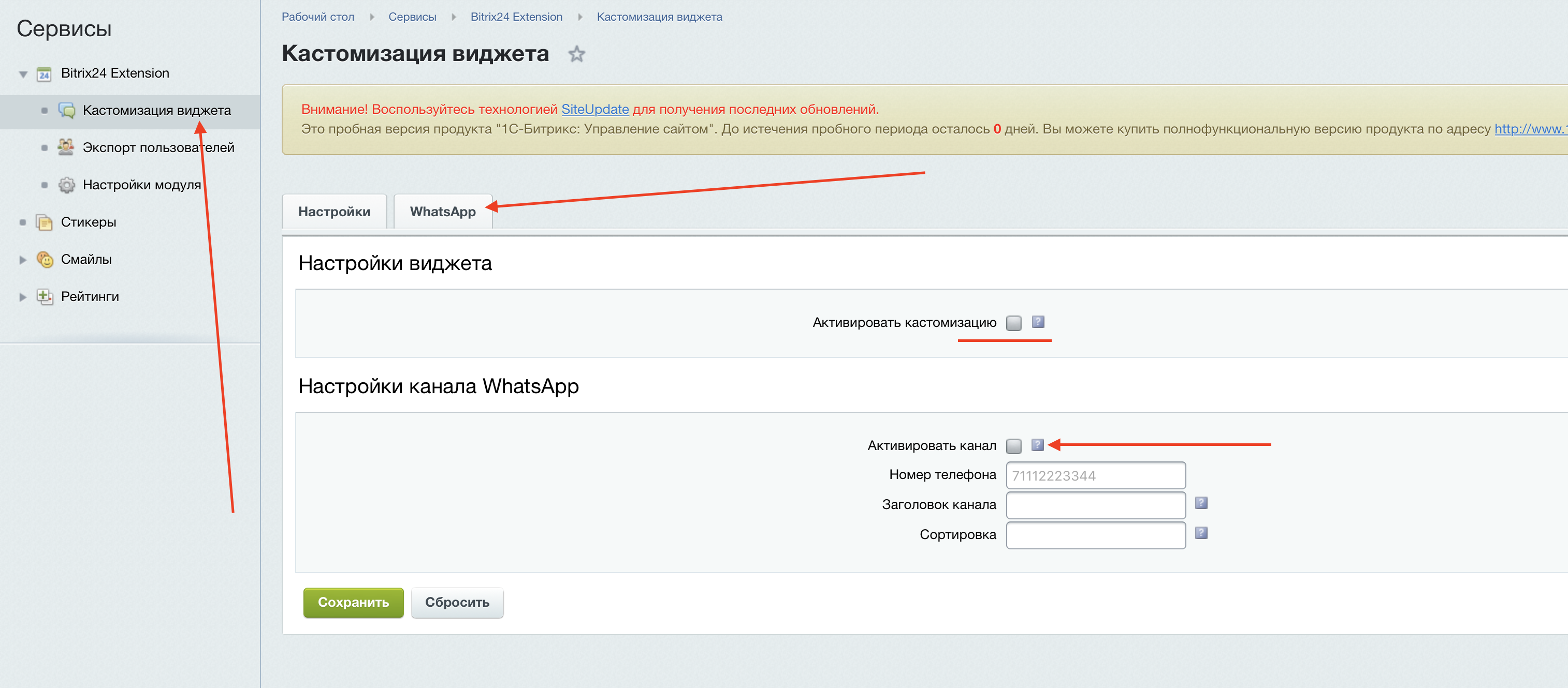 - Модификация виджета Открытой линии: добавление канала WhatsApp.