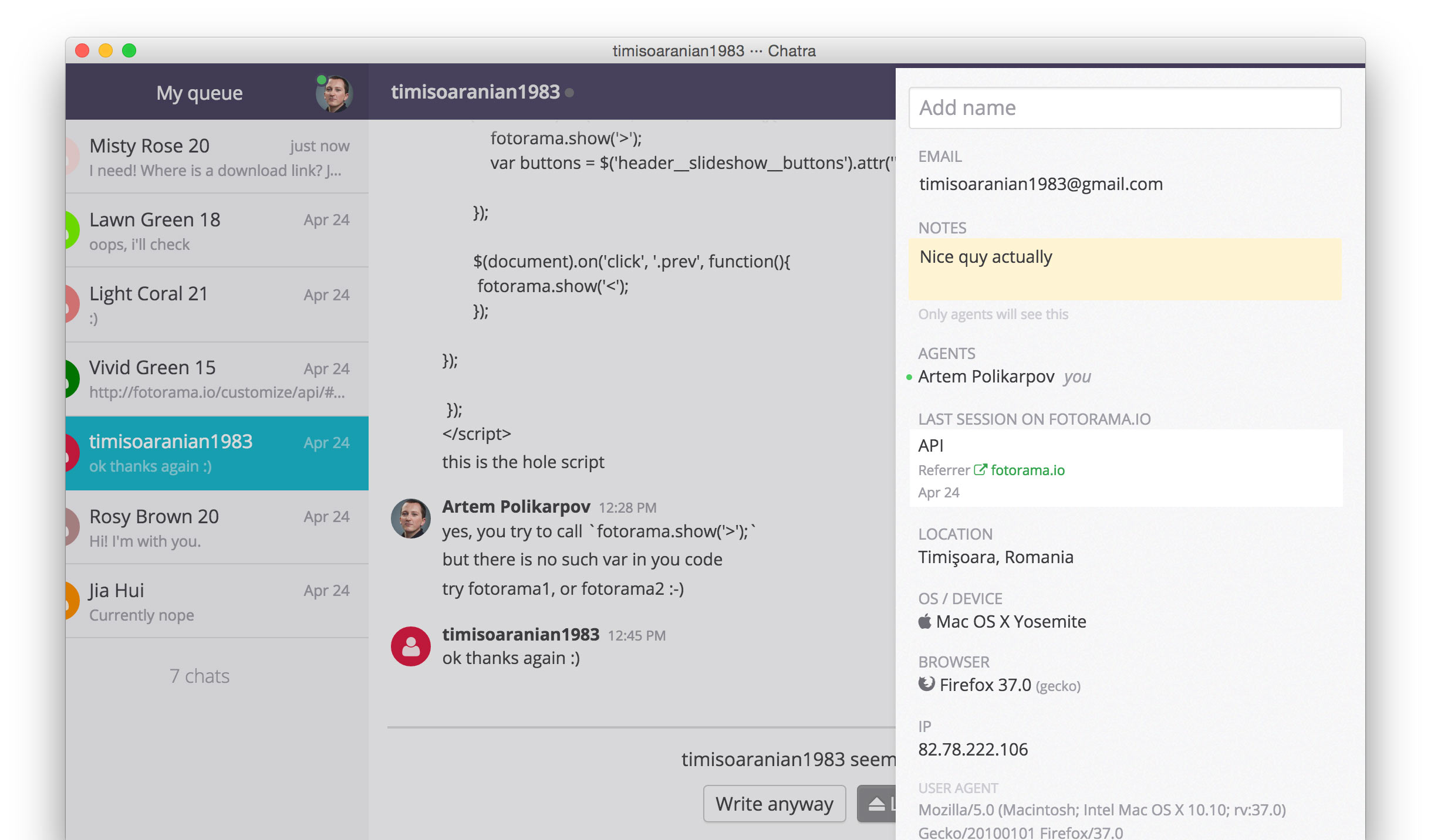 Онлайн-консультант Чатра позволяет вам отвечать на вопросы в чате, развеивая сомнения клиентов и помогая им совершить покупку. Используйте чат для улучшения сайта: выявляйте трудности и собирайте контакты. С Чатрой делать это совсем легко.