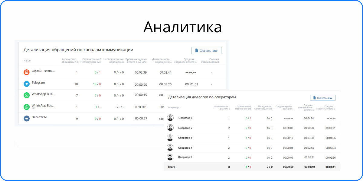 подробную аналитику по каналам и операторам,